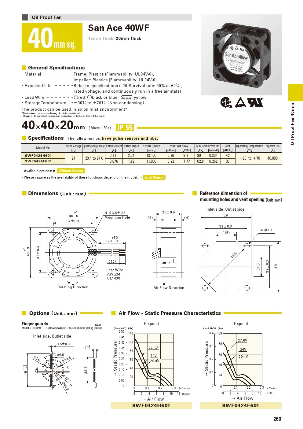 SanAce40WF 山洋散热风扇4020直流散热风机DC24V防油散热风扇9WF0424H601