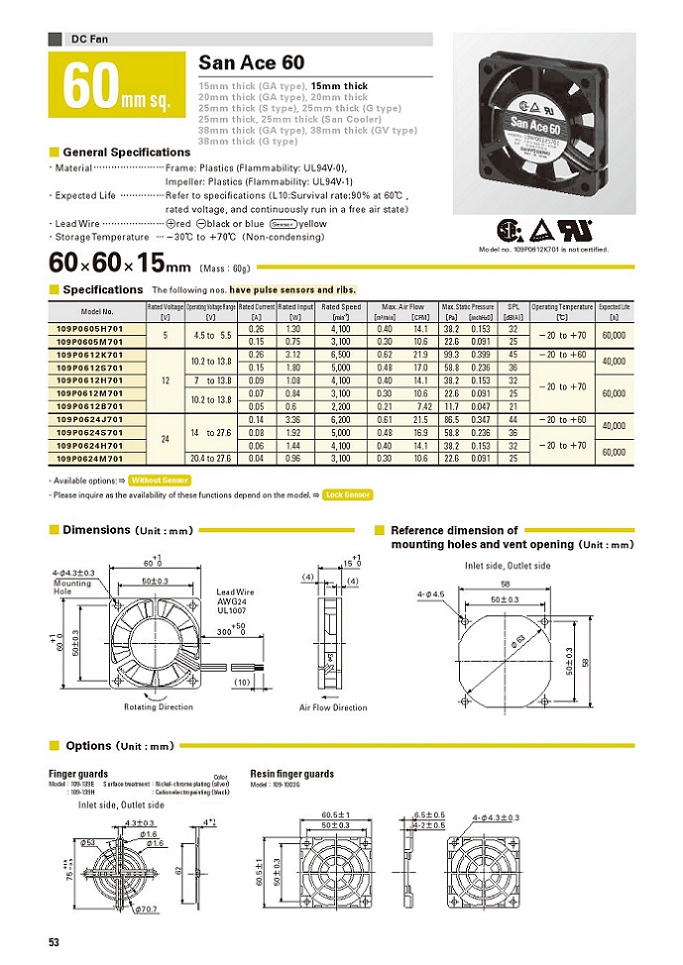 SanAce散热风扇60*60*15mm 尺寸型号汇总如下: